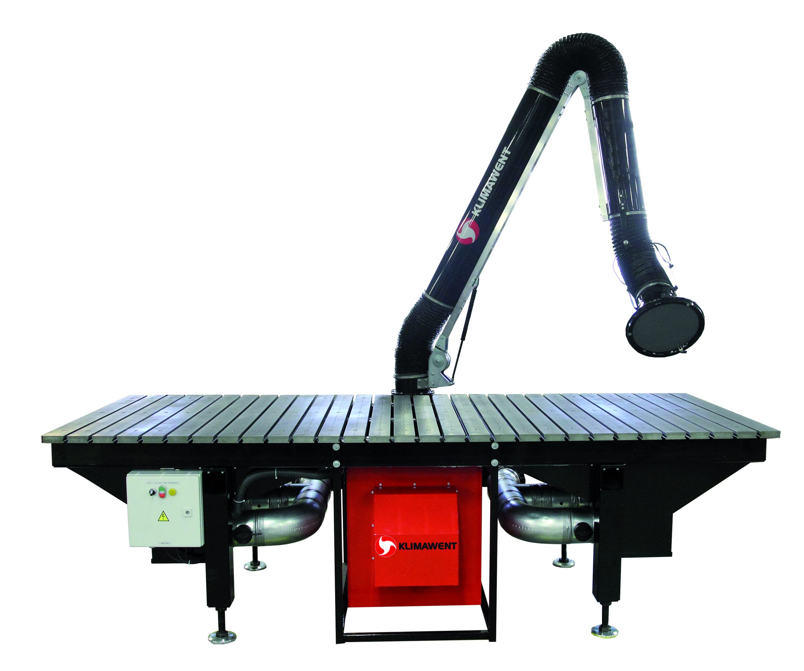 ERGO-STW-3D Filtre ünitesi, kuru tozlar ve kaynak dumanı için tasarlanmış özel bir ünitedir. H13 sınıfı teflon kaplı filtre meteryali ile yüksek verimliliğe sahiptir. Üzerindeki ızgara tezgaha max. 1500 kg yükleme yapılabilir. Böylelikle iki emiş aksamı sayesinde yüksek verimlilikte emiş sağlanarak, özellikle kış şartlarında şartlandırılmış sıcak havanın tahliyesi engellenerek, temiz hava sirküle edilecektir. Hem mafsallı duman ve toz emici akrobat kol hem de tezgah emişi sağlandığı için yüksek verimliliktedir.